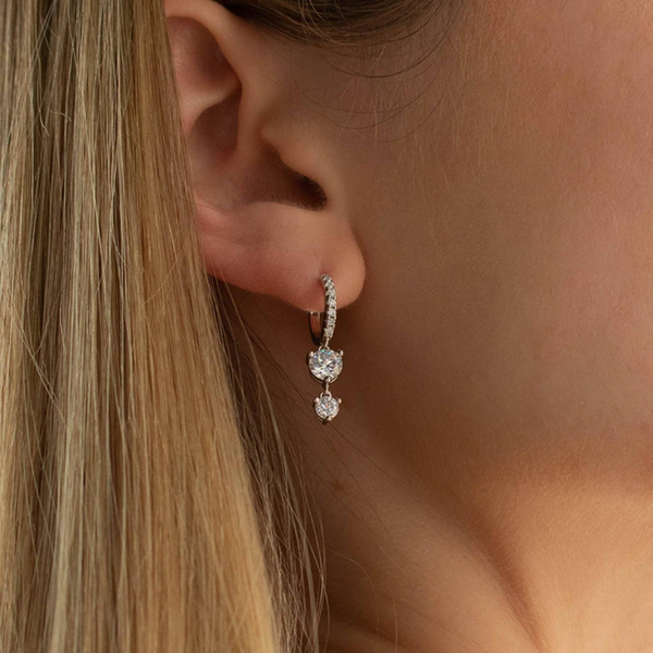 Jeder Ohrring ist mit zwei funkelnden, laborgezüchteten Diamanten im runden Brillantschliff besetzt – von höchster Qualität: Farbe D, Reinheit VVS1 – optisch und visuell nahezu identisch mit natürlichen Diamanten.