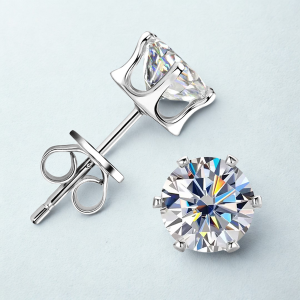 Jedes Paar ist mit einem brillantgeschliffenen, laborgezüchteten Moissanit-Diamanten besetzt – eine nachhaltige und funkelnde Alternative zu natürlichen Diamanten.