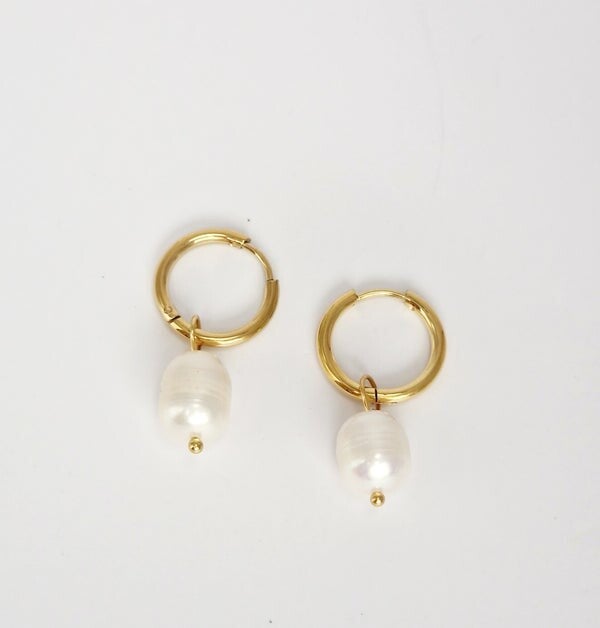 Edelstahl-Creolen mit Süßwasserperle – Silber oder Goldplattiert