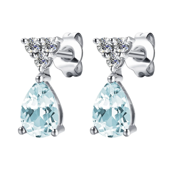 Der hellblaue Topas strahlt Ruhe und Eleganz aus, während die drei glitzernden Kristalle am oberen Ende für zusätzliche Lichtreflexion und einen klassischen Akzent sorgen. Dank des hochwertigen Sterlingsilbers sind die Ohrringe hypoallergen, langlebig und ideal für empfindliche Ohren geeignet.