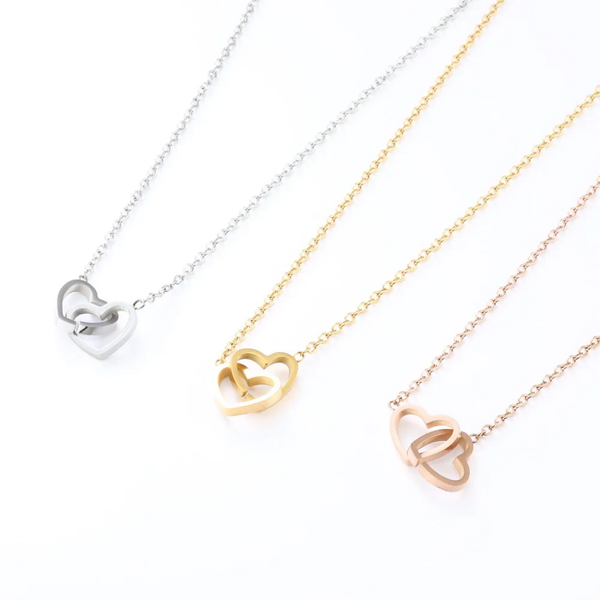 Edelstahl-Halskette mit doppeltem Herzanhänger | gold, silber oder roségold