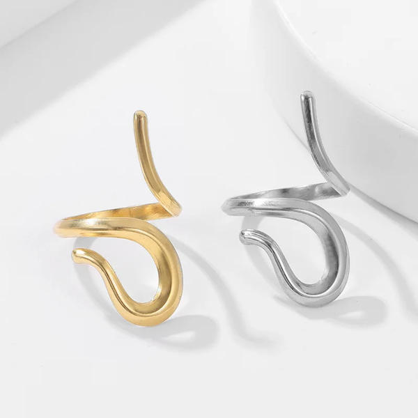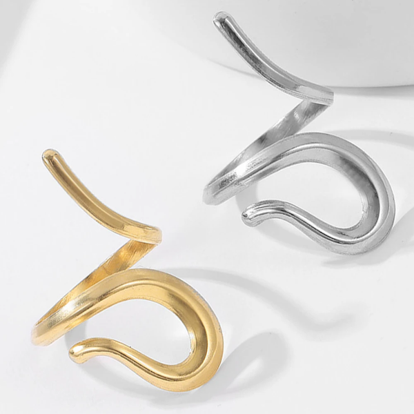 Das geschwungene, abstrakte Design strahlt Eleganz und Individualität aus – perfekt für alle, die minimalistischen Schmuck mit einem kreativen Twist lieben.