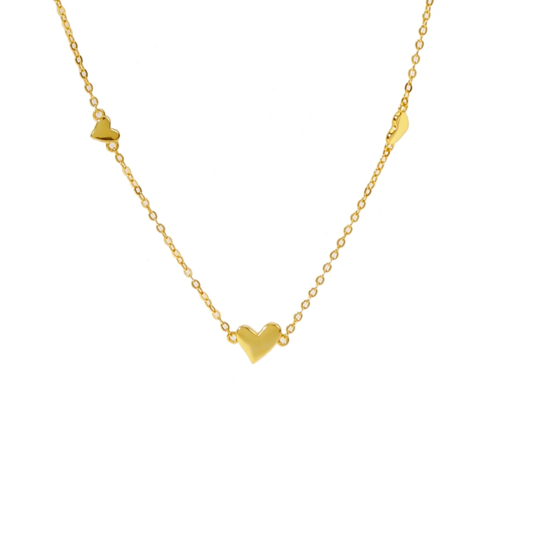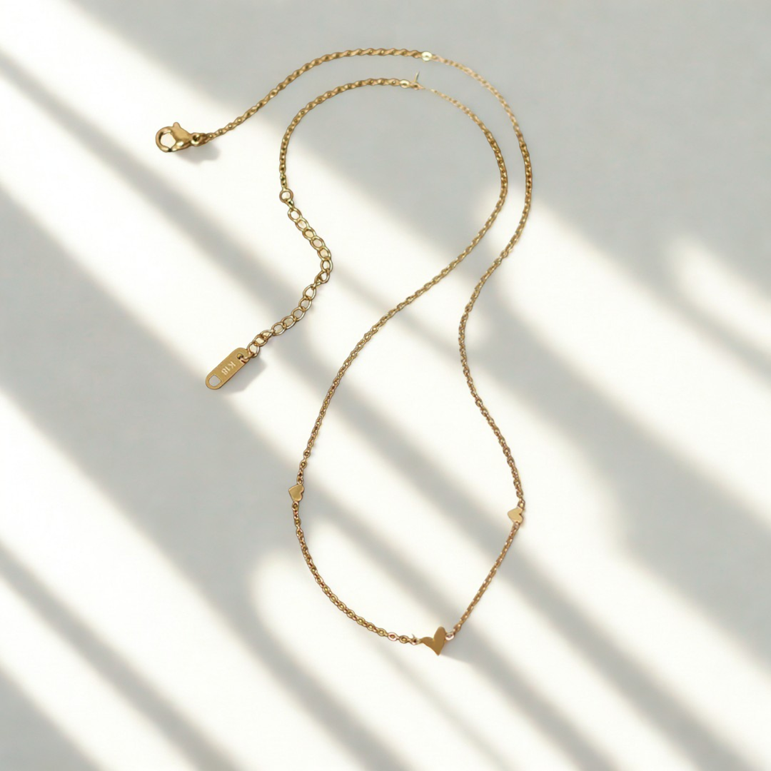 Die feine Kette mit drei kleinen Herzen verleiht jedem Outfit eine feminine und stilvolle Note.