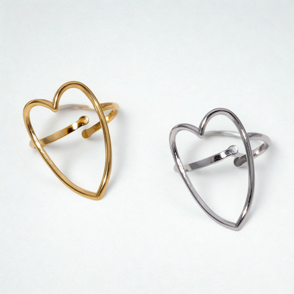 Edelstahl Herz Ring Damen – offen & verstellbar – Gold oder Silber