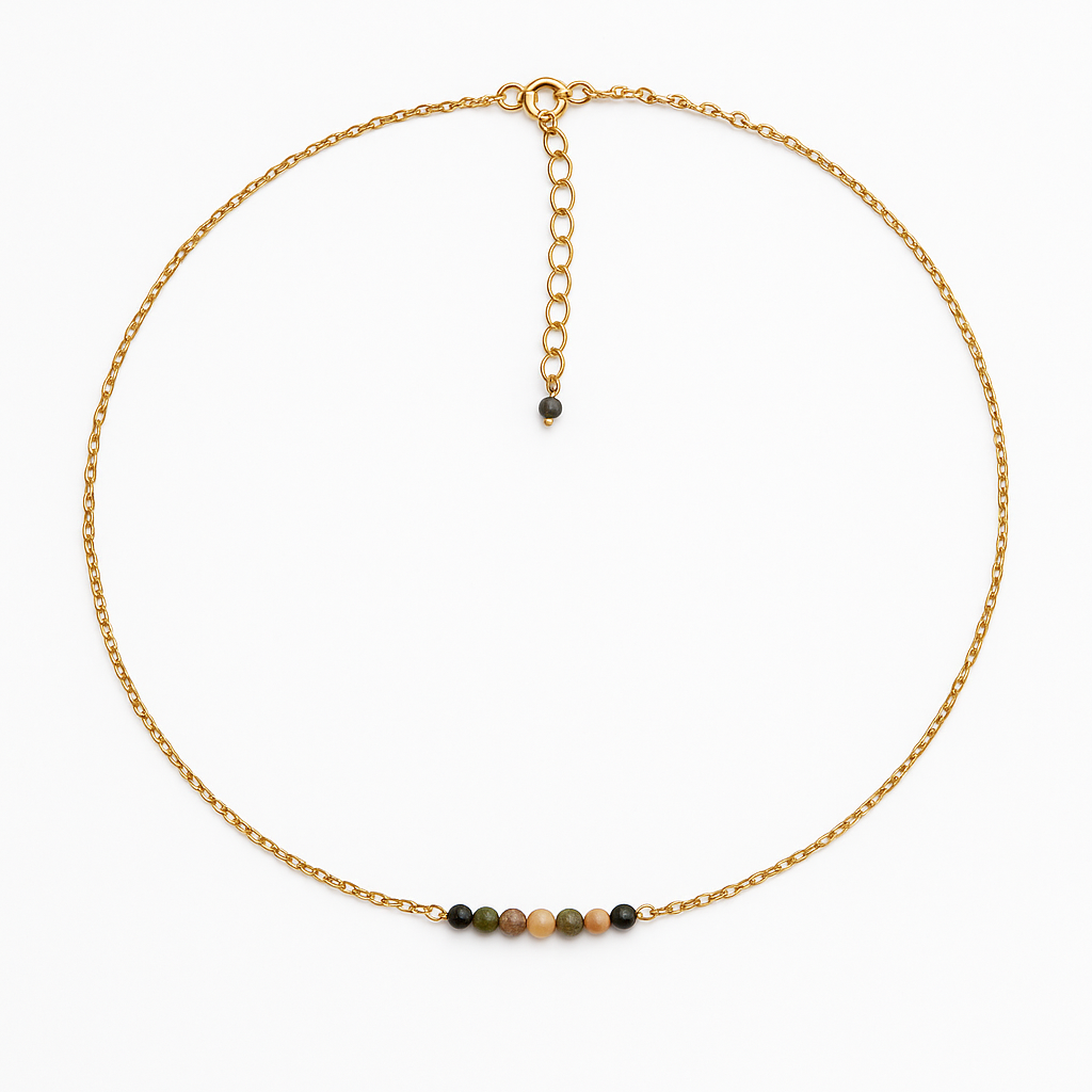 Minimalistische Edelstein Halskette – Edelstahl Gold/Silber – 42+6 cm – 3 mm Naturstein