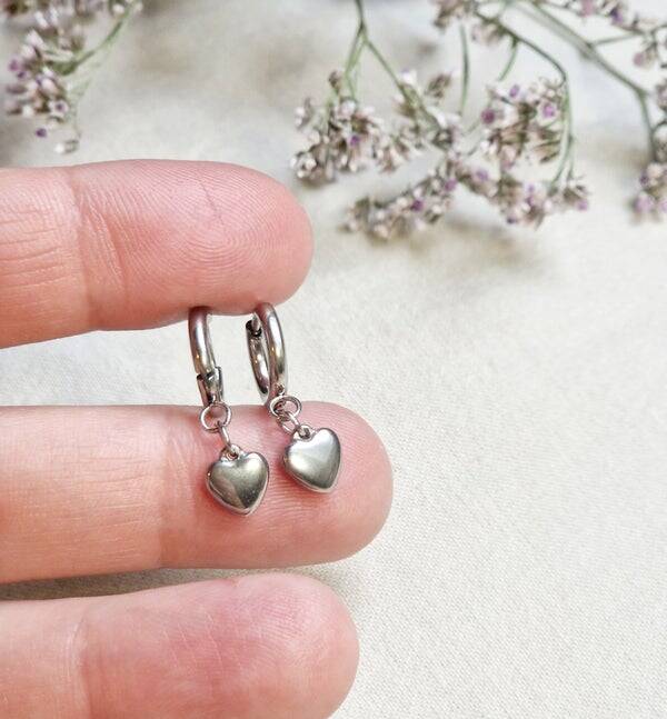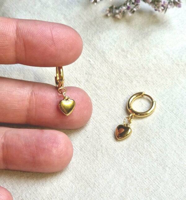 Creolen mit Herzanhänger – Premium Edelstahl – 12 mm – Gold & Silber – Handgefertigt