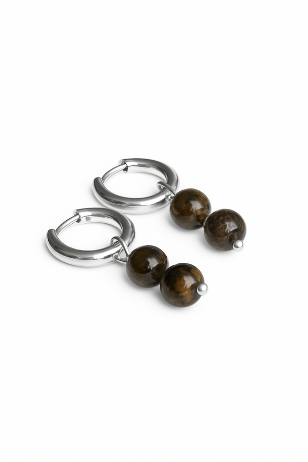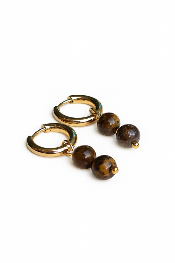 Diese eleganten Creolen mit Tigerauge-Edelsteinen verleihen jedem Outfit einen warmen, natürlichen Glanz. Die Creolen sind in goldfarbigem oder silberfarbigem Edelstahl (12 mm) erhältlich – leicht, hypoallergen und farbbeständig.